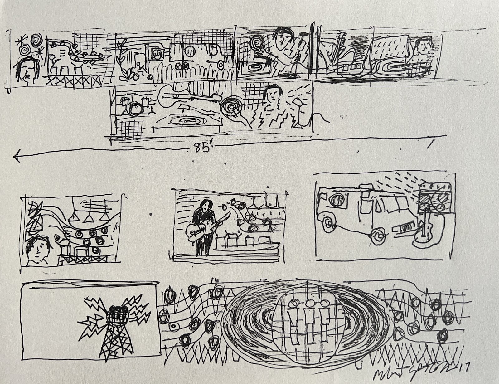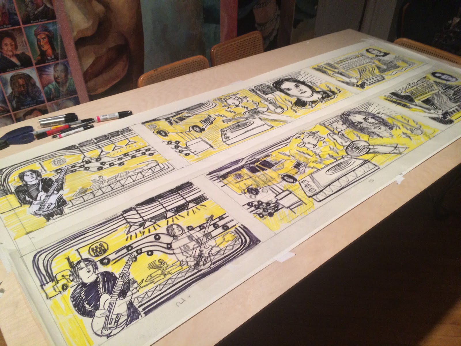 I was asked to create the mural for Third Man Pressing by Jack [2016]. He remembered me from seeing my mural at the Duffy pipe warehouse in Delray that was done in 1972 . I met Jack in Corktown at Brian Muldoon’s upholstery shop where he was working. I had Brian do some work on a couch and I traded him a sculpture for it. I designed 5 proposals for the Third Man mural and Jack really liked the last one best. I think Jack had a lot in common with my friend Gordon Newton who was also an artist. He loved hockey and Jack loved baseball. They both had strong feelings about winning and a love for the cass corridor. It’s been great working with Third Man Records and the staff.