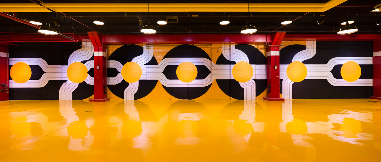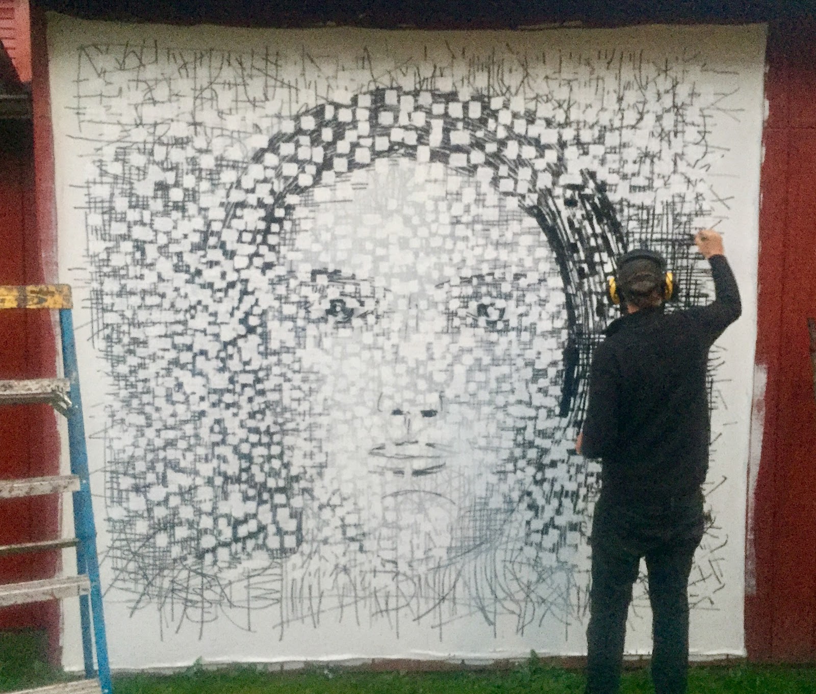 After I made the mural which I titled “33/45”, I asked Jack if I could paint his portrait and he said I didn’t need his permission. I guess that maybe I was influenced by Chuck Close’s Portraits but my attention to detail is quite a bit different. I’m a Detroit Cass Corridor artist and I feel that need to get things done and that gives way to a lot of fine points which do not get covered or included, therefore things become a bit edgy or rough and so much of Detroit music also has that in it. I started the [Third Man] mural with Jack playing guitar and playing records. I worked on it for a month. They said they didn’t want to go that direction, but more industrial. Diego Rivera did a mural of the assembly line workers. I ended up on a mural with circles with the record with sound waves in a similar way. It took me a whole month to come up with that. Now [with the presses], you get to see parts of it, but it’s still there and visible. Regardless, it serves as a historical document of Detroit. I am no Diego Rivera, but maybe one day.