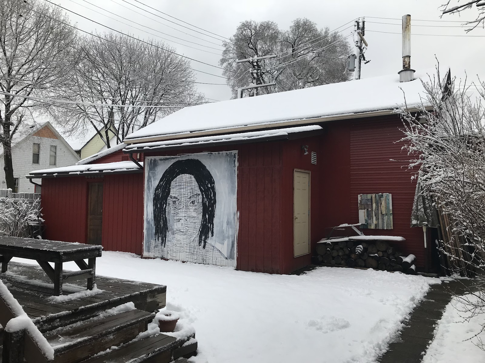About art, I do art every day. It is like a ritual. You have to do it to exercise your brain. Like guitar. If you want to be any good you have to work at it every day. Jack has done everything with music. I have done everything with art. I have a certain style. Jack has a certain style. I am not world wide like Jack. He started out with record companies then decided he wanted to control his music. In art it is different, if you get too into selling art you quit being an artist. It’s not the money so much. It’s the high from experiencing the creation of art similar to what Thomas Edison said about genius, something like if you don’t apply yourself you can’t become great. The more you do the better you get. You just have to work. While making my art work a lot of my friends had teaching jobs. I decided I wanted to be an artist and a carpenter. I rebuilt homes. At 70, I bought a home and restored it. If you go down Canfield, you can see the historic homes. I rebuilt many of those. There are a lot of old houses. In the 1970s they were in bad shape. You could get one for $1000. I bought my house in 1980 for $2000. I had to learn how to lay bricks and plumbing. My grandfather, who I never knew, was a carpenter. He came from England and built houses in Hamtramck. I think I got that from him. My father was a musician. I didn’t get that gene otherwise I would have been Jack’s competition. I had a band and gave it up. I grew up welding and working on cars and doing art classes. I was creative all of the time. Then I wouldn’t call it being creative, but just being a mechanic but that is what I call it now. The changes of the seasons inspire art here. I painted the Jack portraits in the dead of winter outside of my studio. We used to have to break the ice on the toilet to use it in one of my old studios. That’s Detroit, the struggle.