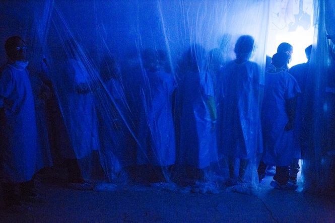 On July 2, 2014, a group of 40 people were called to an abandoned building in London’s Strand district for what they had been told was a medical appointment with contagion disease specialists Vescovo & Co. After being separated from their belongings and told to change into scrubs and face masks, they all went through different but always perplexing medical tests before being ushered into a smoke-filled room to the sound of an alarm. The general atmosphere of anxiety and confusion quickly turned to euphoria when a white screen fell to reveal rock musician Jack White and his band, who proceeded to play a 30-minute set to the small crowd. White ultimately fell to the floor, convulsing, before being carted away to an ambulance. “We all poured out of the building, still in our surgical gowns, a sudden tide of blue washing onto the pavement outside”, writes Guardian columnist Laura Barton. The event was over, and its audience carried no proof of it but their memories, their scrubs, and a handwritten prescription from “Dr White”.